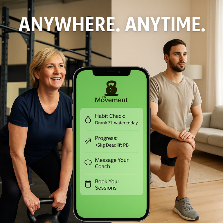 The Movement App is your all-in-one training and lifestyle companion — giving you personalised workouts, flexible scheduling, nutrition and habit tracking.